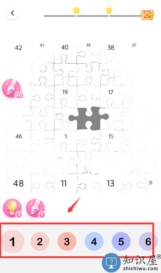 2、点击未上色的拼图碎片就可以给它上颜色。