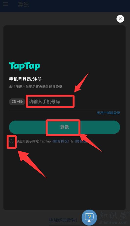 3、先点击打√然后输入手机号码获取验证码并登录。