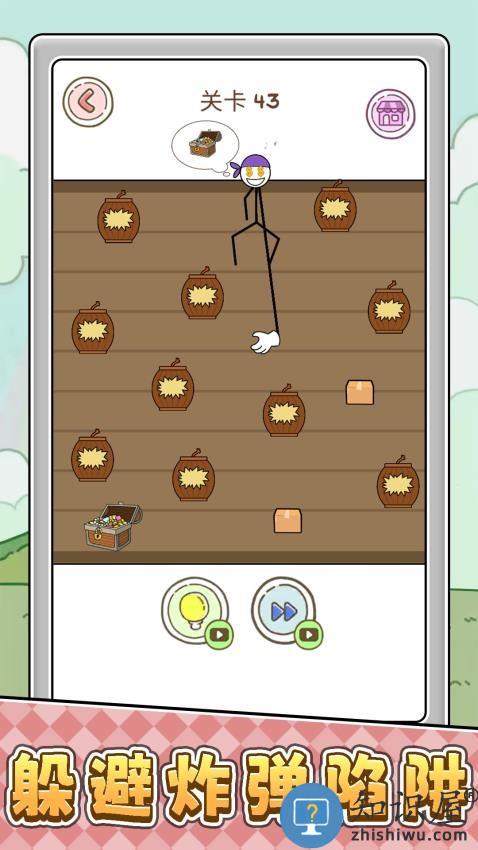 1、视觉风格简约明快,火柴人造型搭配动态光影效果,陷阱机关采用高对比度色彩标注,重要道具发出脉冲光效,确保关键信息清晰可辨。