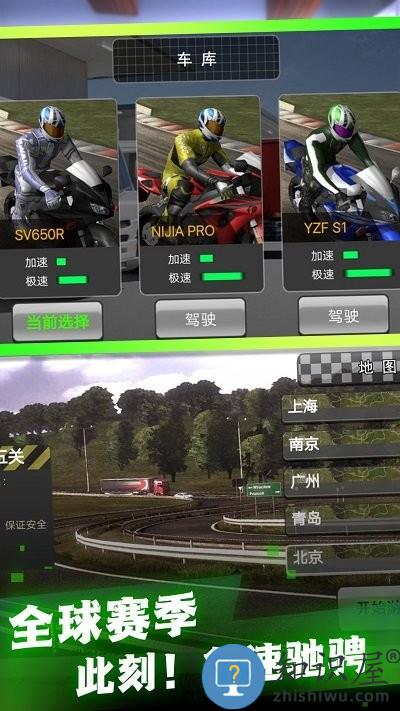 1、在全新的场景中和其他摩托车手进行对抗,展现你的驾驶技术,成功刷新纪录。