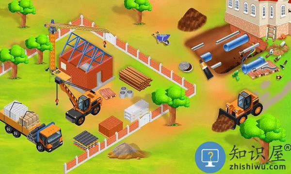 - 画2265玩家喜欢的颜色的房屋用挖掘土建设和创造屋顶瓦工:用混凝土搅拌机建立一个完整的小镇。