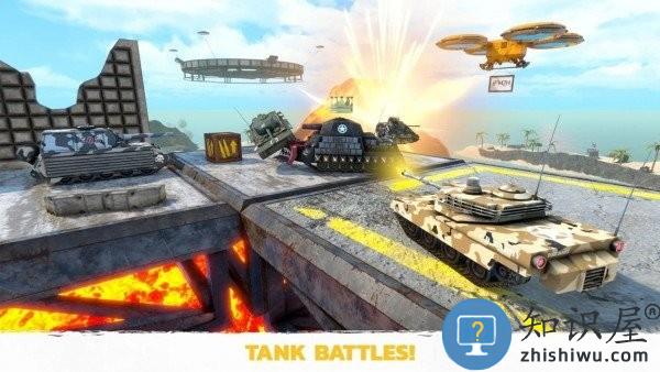 在天空竞技场轰爆或撞飞对手,获得分数,主宰战斗竞技场。获得胜利,从而购买新的坦克 - 每一款都有独特的玩法。来精彩的坦克战模式里大轰特轰吧!
