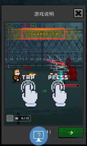 2、点击屏幕开枪,或长按自动射击消灭僵尸。