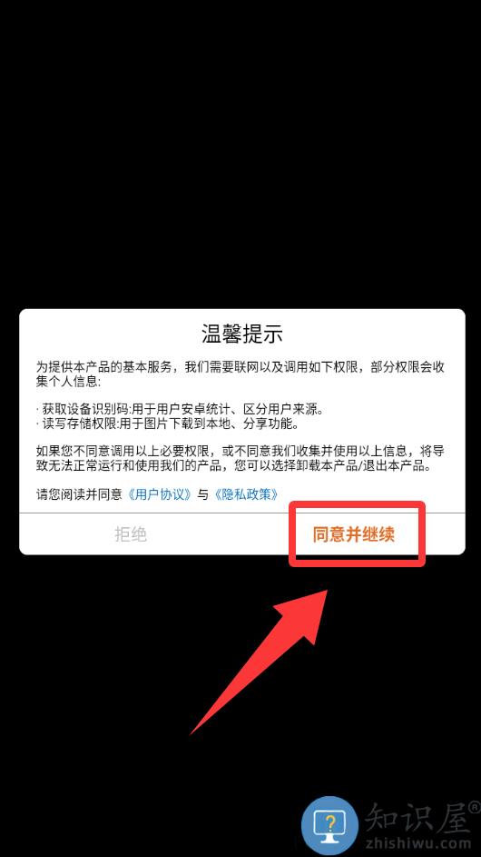 1、点击温馨提示里的同意并继续。