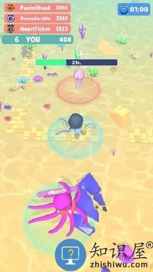 章鱼的冲突吃掉一切游戏是一款好玩的休闲吞噬游戏,游戏中玩家是一只章鱼,在海底世界通过不断的吞噬比你小的海底生物来生存,游戏玩法是经典的吞噬玩法,十分有趣,喜欢的快来下载试试吧!