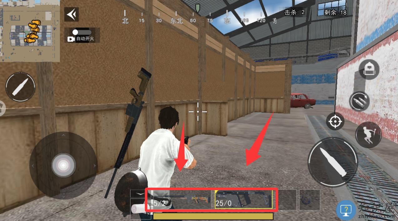3、红色框框哪里可以切换狙击枪和冲锋枪。