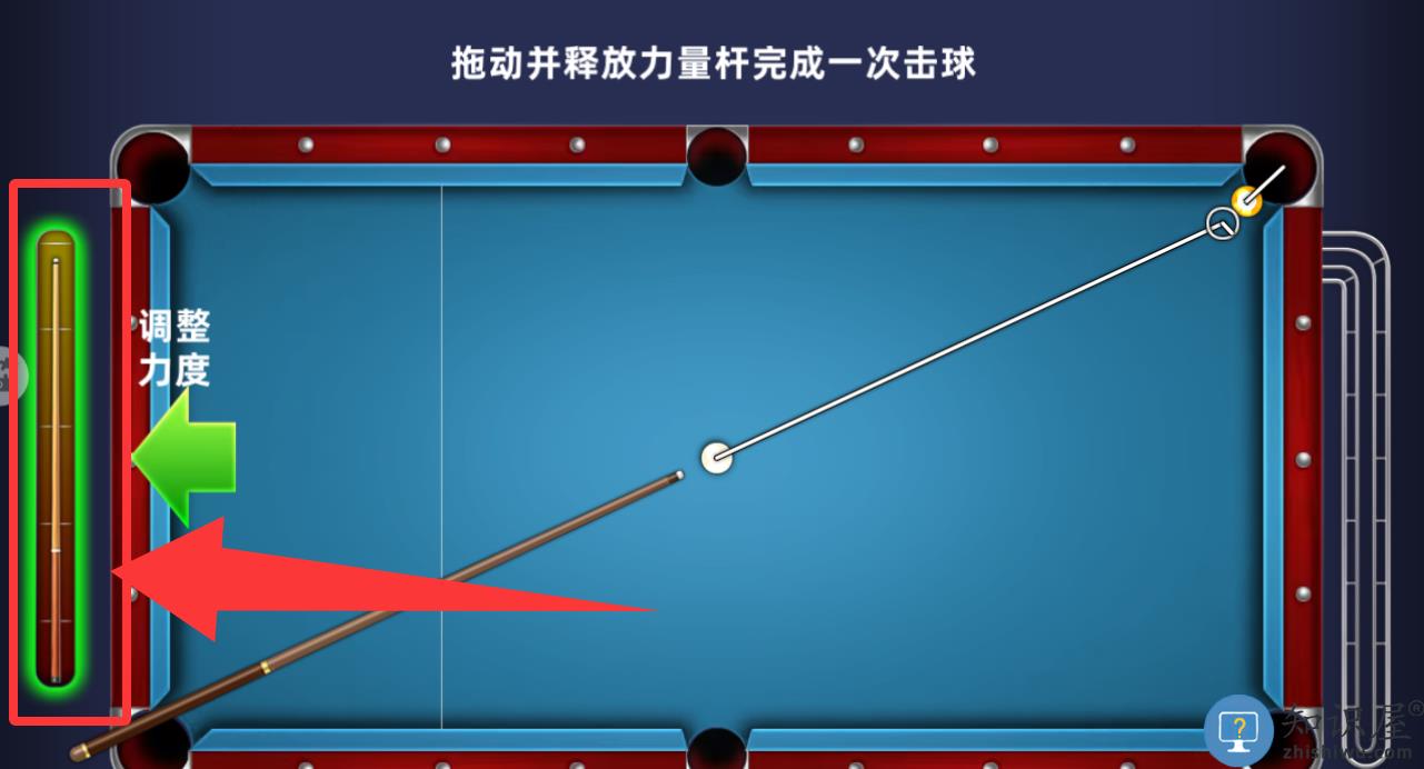 2、在红色框框里滑动手指可以移动球杆。