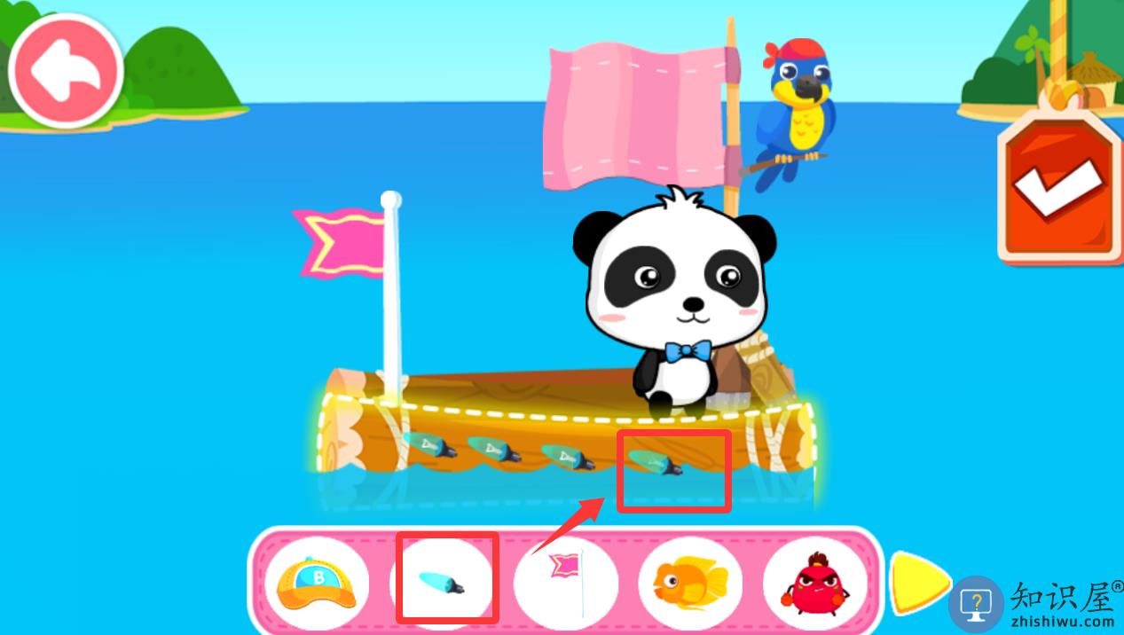 1、进入游戏点击下面红色框框里的物件摆放在船上。