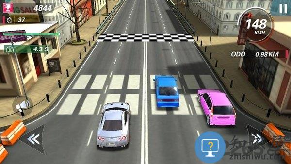 1、通过触摸箭头或重力感应操控车辆左右移动躲避车流。
