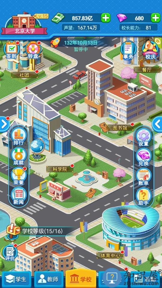 将一所普通大学经营为世界一流名校,处理好学校发生的奇怪事情,你所向往的大学,你所经历的大学,这里你都可以体验到。什么宿舍校园网太慢了,现在你说了算!什么餐厅菜品太少了,现在你说了算!什么实验楼设备太少了太旧了不先进了,现在你说了算!什么体育馆不够大,没有你喜欢的体育项目,都不是问题,现在你说了算!什么图书馆藏书太少,没有及时更新,图书太旧,现在你说了算!......太多了一言难尽科学院可以帮助国家科技发展,成就名校的同时引领科技前沿。
