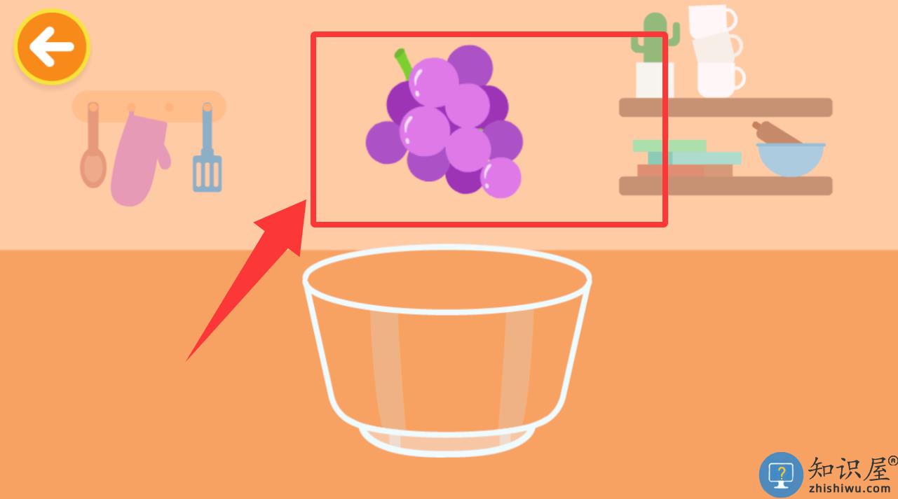 3、点击红色框框里的葡萄放在碗里制作葡萄汁。