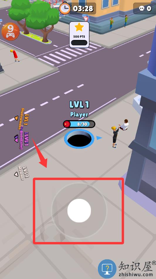 5、在游戏刚开始的时候,可选择小一点的目标进行吞噬,例如人、垃圾桶、下水道井盖等小物品。