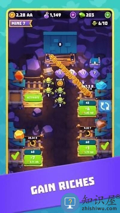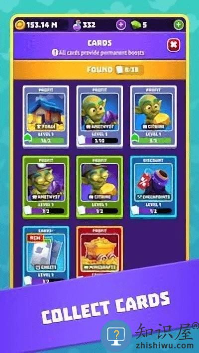 游戏中玩家需要无尽的开采矿中资源,有大量的卡片和特殊能力可以找到,合并您的地精,挖出岩石,收集黄金和宝藏