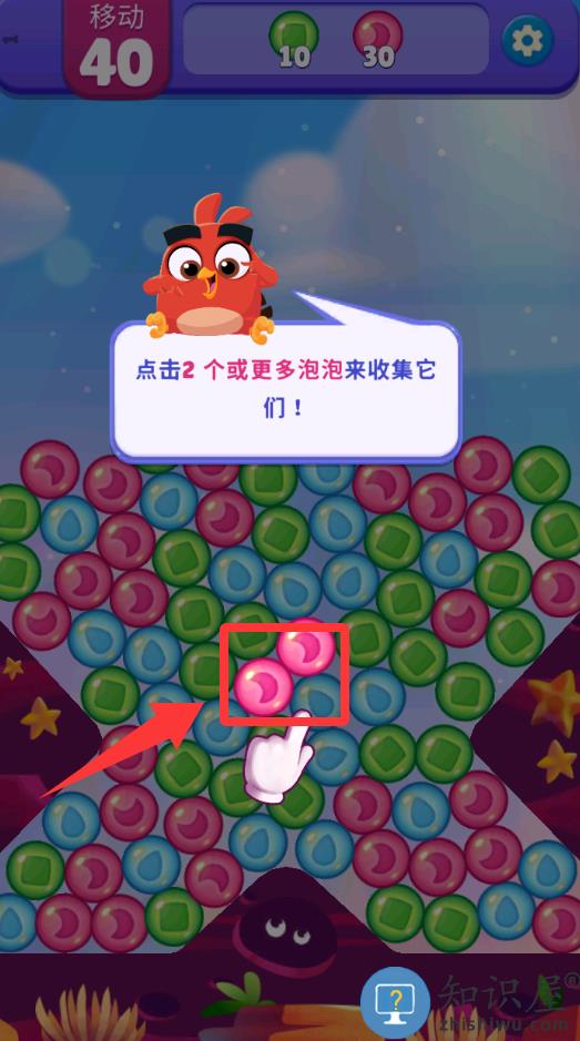 2、点击2个或者更多同颜色的泡泡来收集它们。