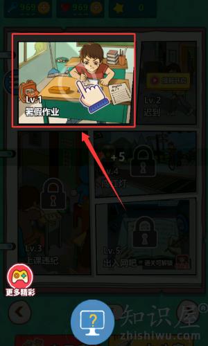 2、点击暑假作业卡片,开始第一关的游戏挑战。