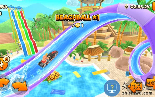 1、点击沙滩球,使用平衡按钮避免头部着陆。