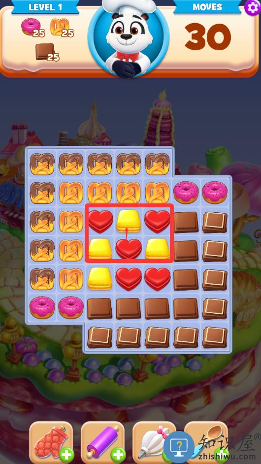 2、这关的任务是要消灭这3种颜色的饼干。