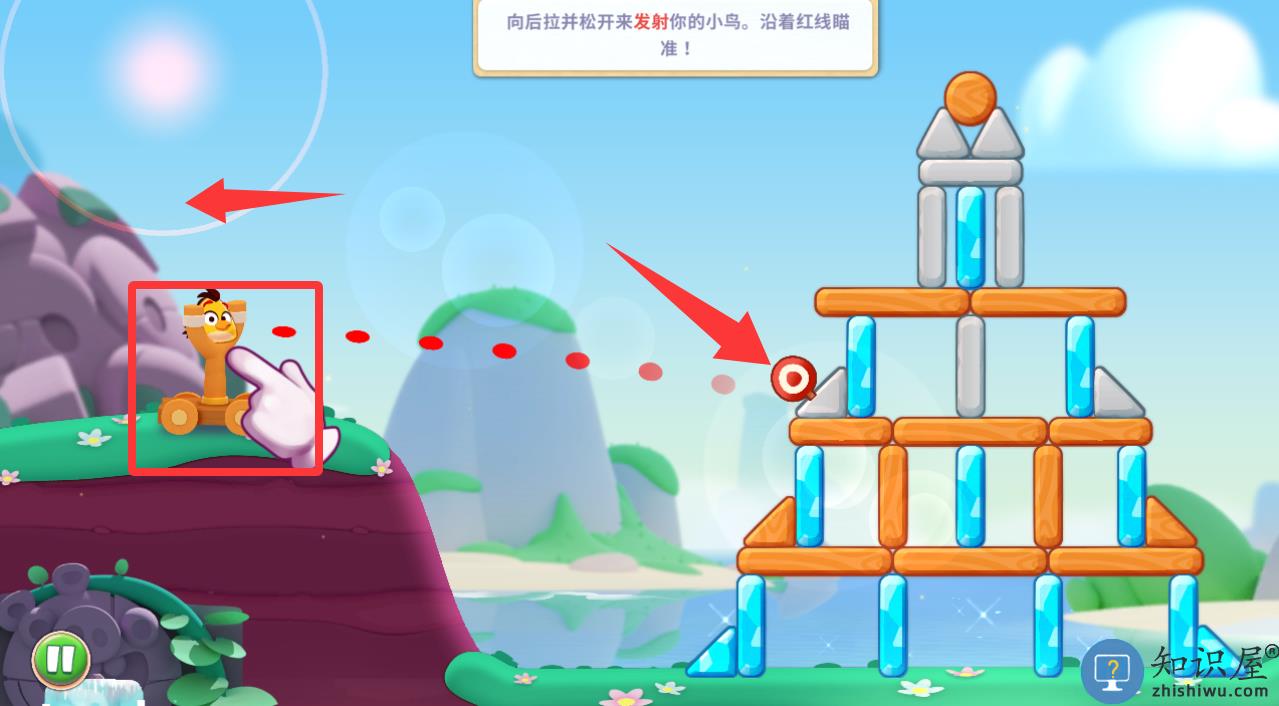 2、进入游戏向后拉并松开就可以发射小鸟了。