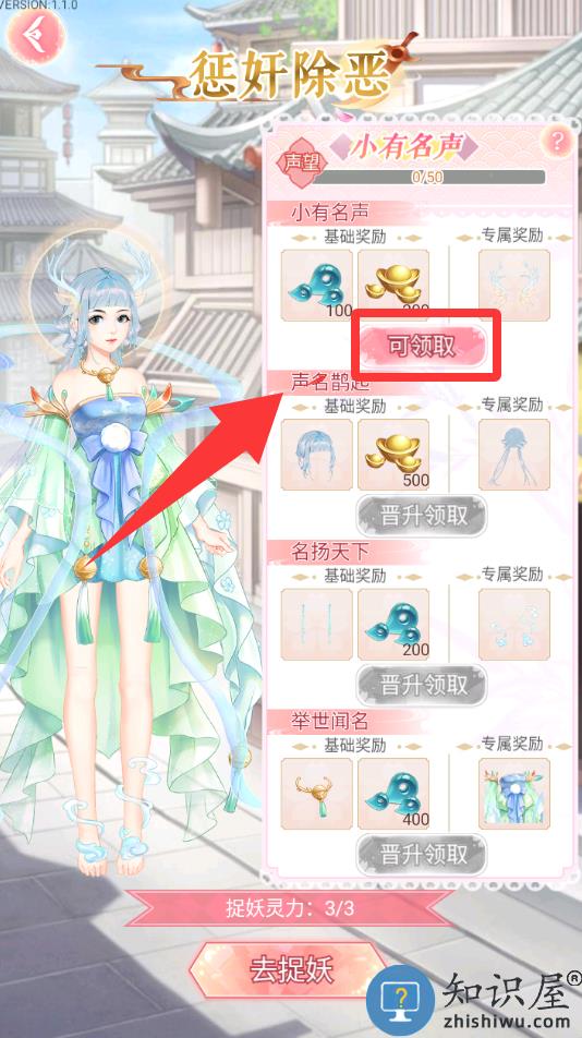 2、然后再点击游戏界面的照妖镜进去领取奖励。