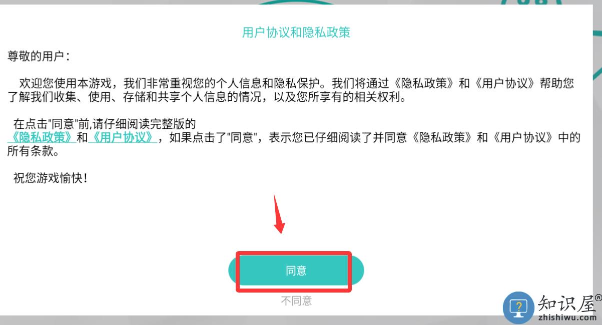 1、点击红色框框里的同意并进入游戏。