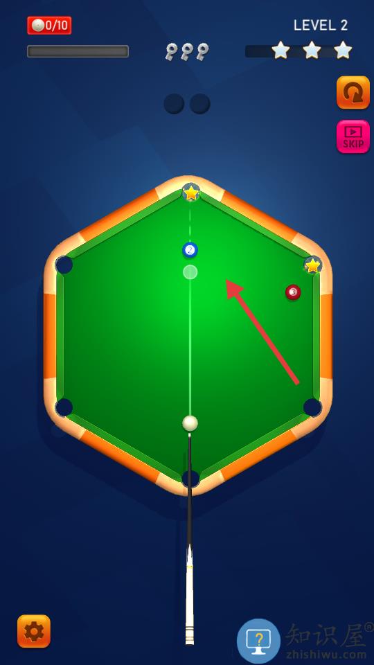 2、通过滑动屏幕控制球杆击打目标彩球。