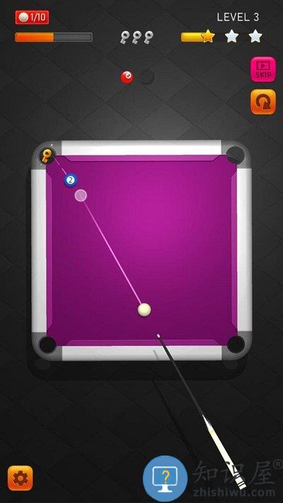 3、随时随地都可以开局来打桌球,发球角度很重要,每一次进球都是艺术