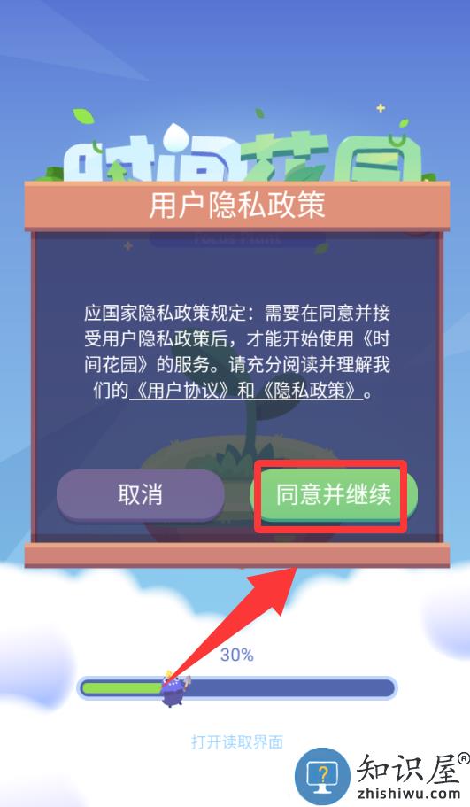 1、点击用户私隐政策里的同意并继续。