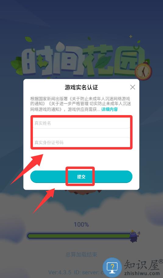 2、进入游戏填写真实姓名和身份证号码并提交。