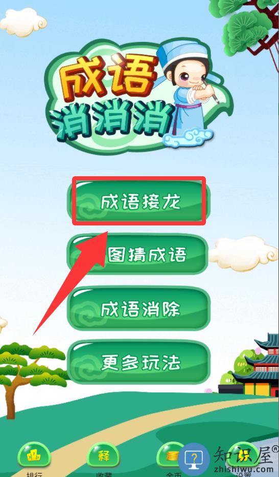 2、进入游戏界面点击红色框框里的成语接龙。