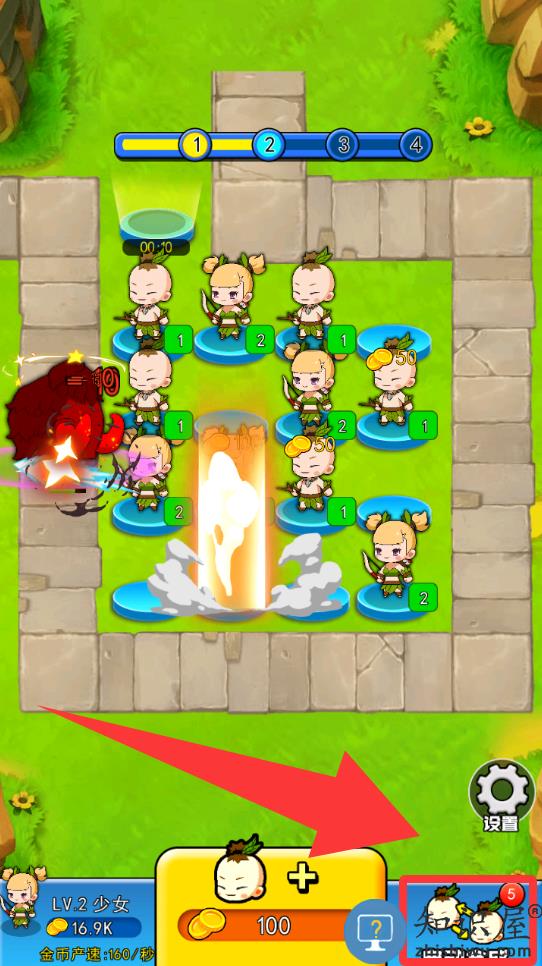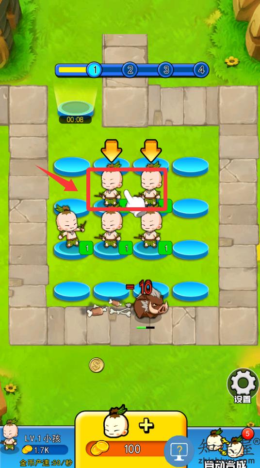 1、点击红色框框里的小孩移动合成一起变的更强。