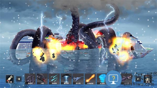 2、破坏工具系统设计充满想象力,包含自然力量、神话生物、现代兵器三大类别,海怪能够进行多段撕咬攻击,导弹则实现精准定点爆破。