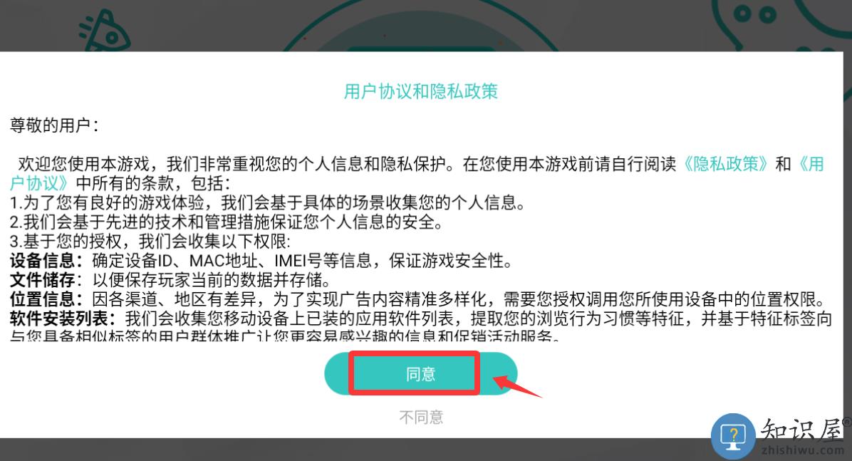 1、点击用户协议和隐私政策里的同意。