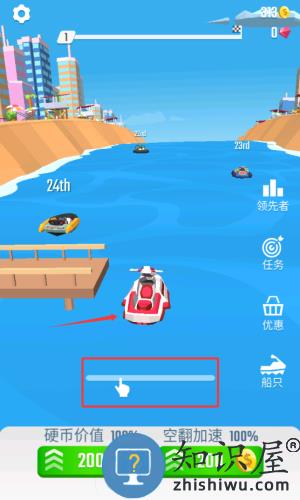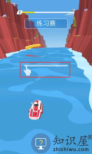 1、按住屏幕控制摩托艇,完成水上练习赛。