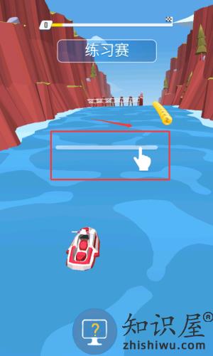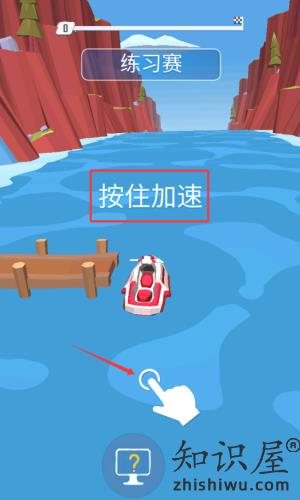 2、按住屏幕加速,控制摩托艇在水面行驶。