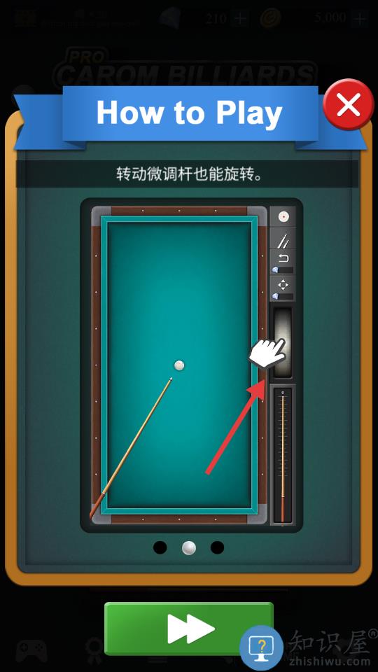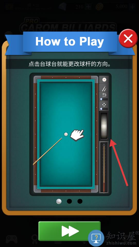 - 按下台球桌可能会将提示方向更改为按下位置。