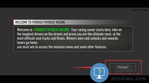 1、点击接受按钮,确认协议开始愤怒赛车。