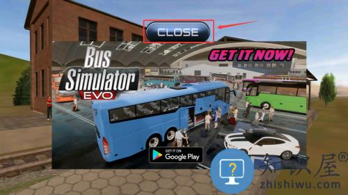 1、点击关闭按钮,跳过巴士模拟器游戏广告。