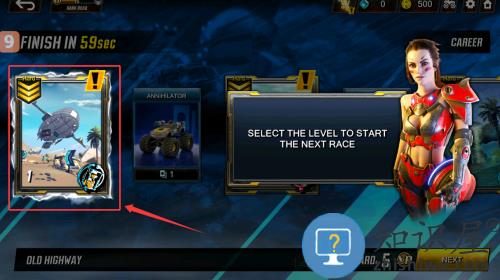 3、选择老公路关卡,在五十九秒内完成比赛。