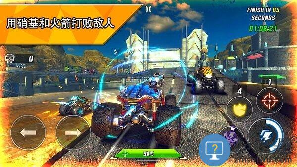 火箭竞技场极限赛车最新版是一款模拟驾驶类的赛车竞速游戏。游戏画面高清细腻、色彩炫丽。玩家在游戏中可以驾驶各种各样的赛车在赛道中进行竞速比赛。同时还有武器装备抵御敌人的攻击。游戏场景丰富并且游戏天气还会随着时间变化而产生变化。