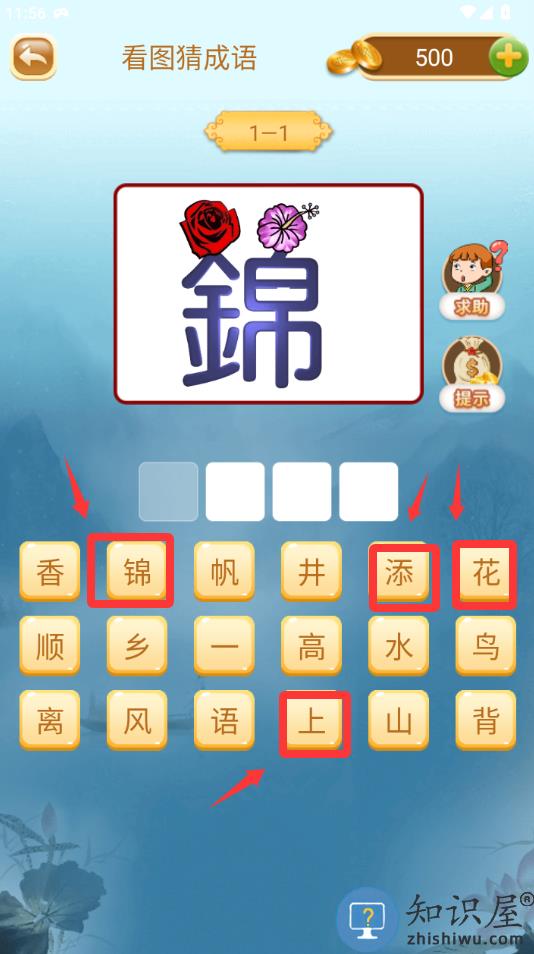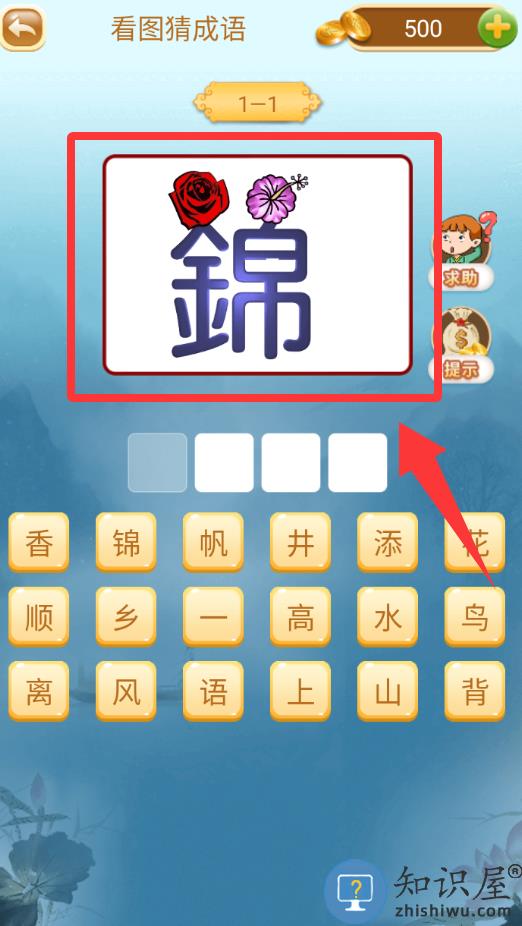 1、进入游戏第一关,看图猜成语。