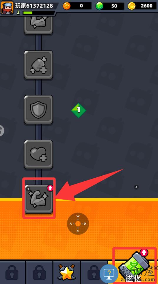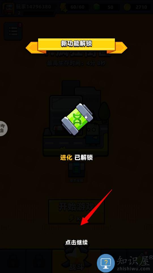 2、进入游戏界面点击右下角进化并进入点击升级。