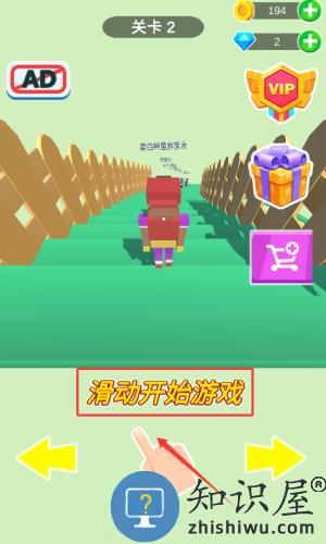 2、滑动屏幕开始游戏,控制角色在阶梯奔跑。