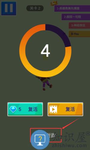 3、点击不谢谢按钮,放弃复活继续游戏进程。