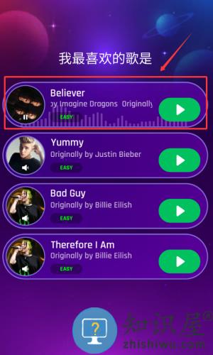 2、选择歌曲Believer,点击播放开始节奏挑战。