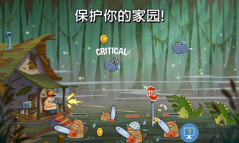 3.玩家拿起枪保护小木屋这片小领地……游戏卖点自然是那不羁的幽默风格,主人公大叔虽身处险境。沼泽动物要围攻小木屋,而小木屋的主人,亦就是玩家。