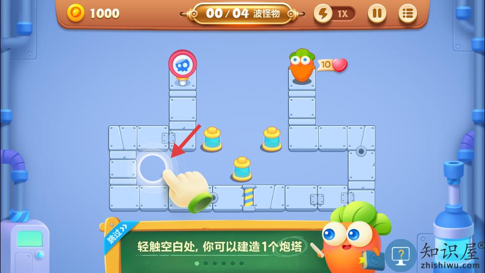 1、在地图空白处放置炮塔抵御怪物进攻。