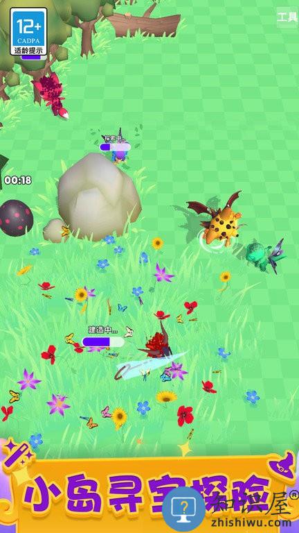 1.带领怪兽萌宠建造家园,让他们在家园里自由玩耍工作。