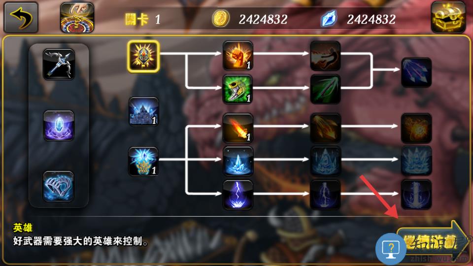 3.按英雄类别的不同,可学得的技能也不相同。