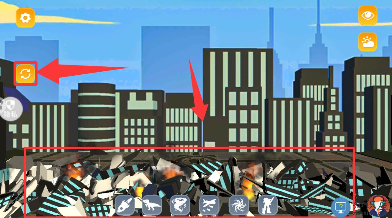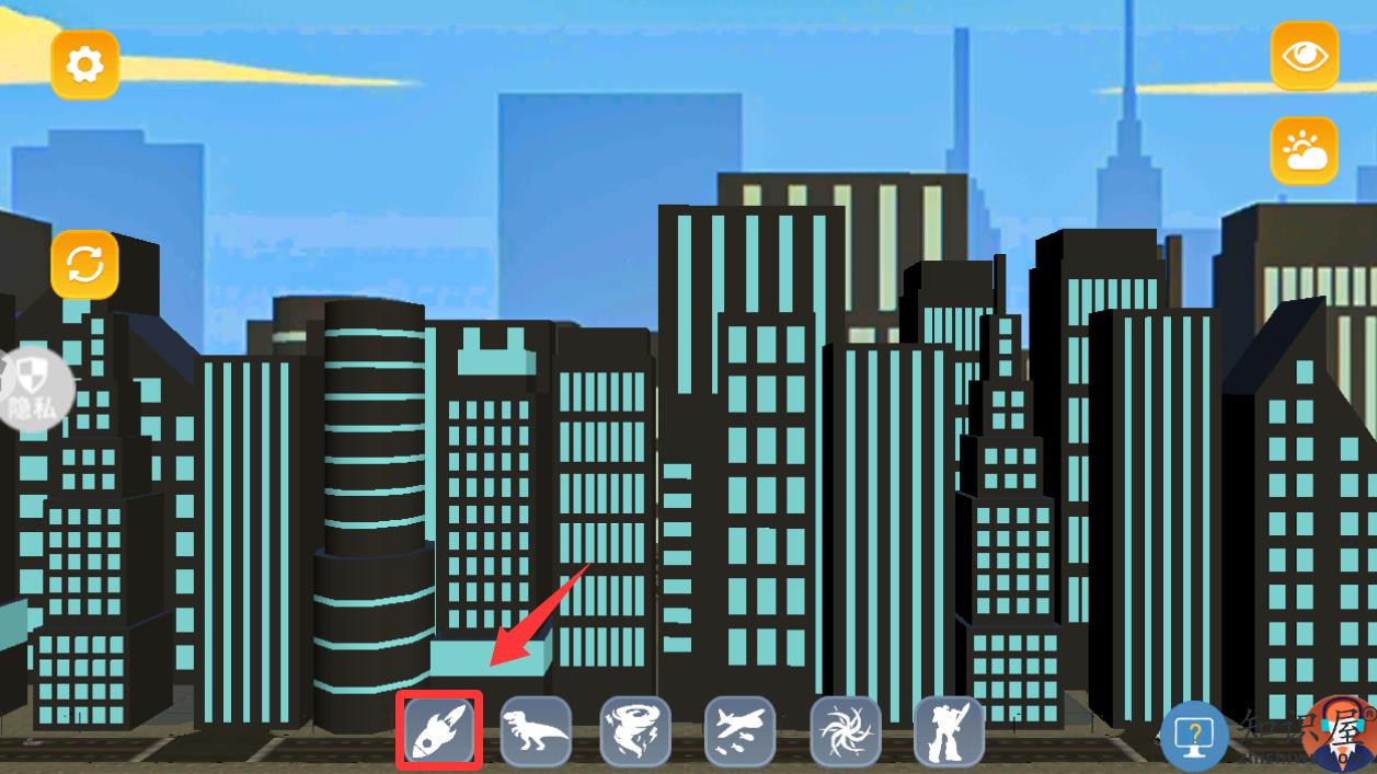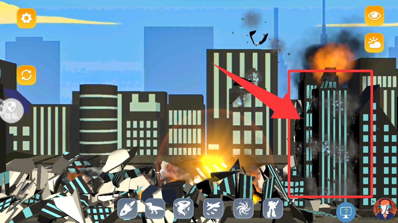 1、进入到游戏点击红色框框里的导弹摧毁这座城市。