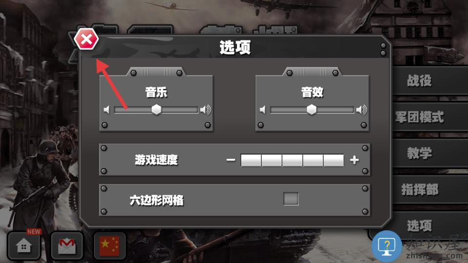 1、游戏主界面点击右侧的选项按钮进入设置。